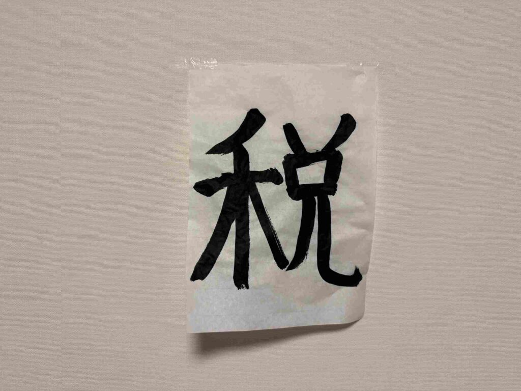 子どもが学校で書いた税の書道展用の習字。子どもが払っている税は消費税くらいでしょうか。by iPhone17 Pro 法人税や所得税、地方税である法人住民税や個人の住民税は経費にはなりません。しかし、消費税については税込み経理という方法で会計データを入... -